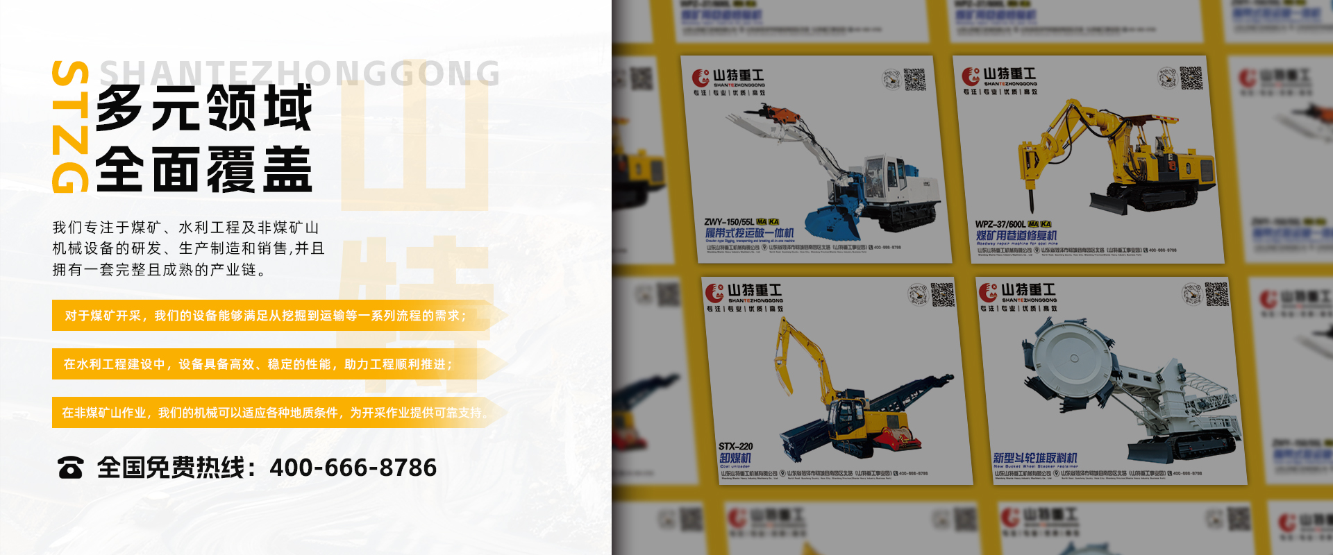 山東山特重工機械有限公司成立于2009年2月,是一家煤礦、水利工程及非煤礦山的機械設備研發、生產制造和銷售的自然人獨資企業。占地面積150余畝,產品主要有斗輪堆取料機,扒渣機,銑挖機,巷道修復機,電動挖掘機,卸煤機,挖破運一體裝載機,翹毛臺車等,八大系列20余個品種,主要用于煤礦及非煤礦山、水利工程、鐵路修建及隧道、涵洞的開挖、火車港口貨物的裝卸、轉運、堆碼等領域。國內市場覆蓋28個省市自治區。